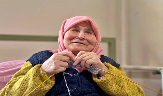Vaktinin çoğunu yatağının üzerinde örgü örerek geçiren Alcan, yaptığı örgüleri ise çevresindekilere çocuk ve torunlarına vermeleri için hediye ediyor.