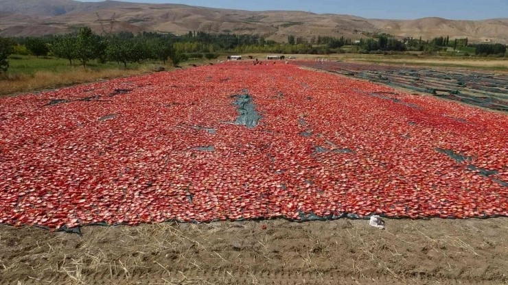 Malatya'nın Kuluncak ilçesinde hasadı tamamlanan domatesler yüzlerce dekarlık alanda kurutularak başta Avrupa ve Orta Doğu ülkeleri olmak üzere çok sayıda ülkeye ihraç ediliyor.