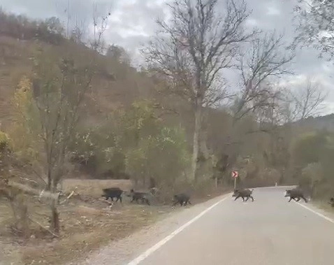 İlçeye bağlı Doğlacık köyü yolunda ilerleyen bir sürücü, yaban domuzu sürüsüyle karşılaştı. Sürücü aracını durdurarak yaklaşık 50 yaban domuzun geçişini bekledi. Sürü ormana girerek gözlerden kaybolurken, o anlar sürücü tarafından cep telefonuyla kaydedildi.