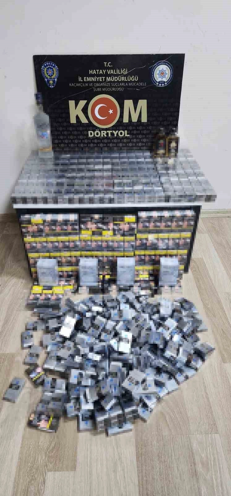 Hatay'ın Dörtyol ilçesinde 750 paket gümrük kaçağı sigara ile 3 şişe kaçak içki ele geçirildi.