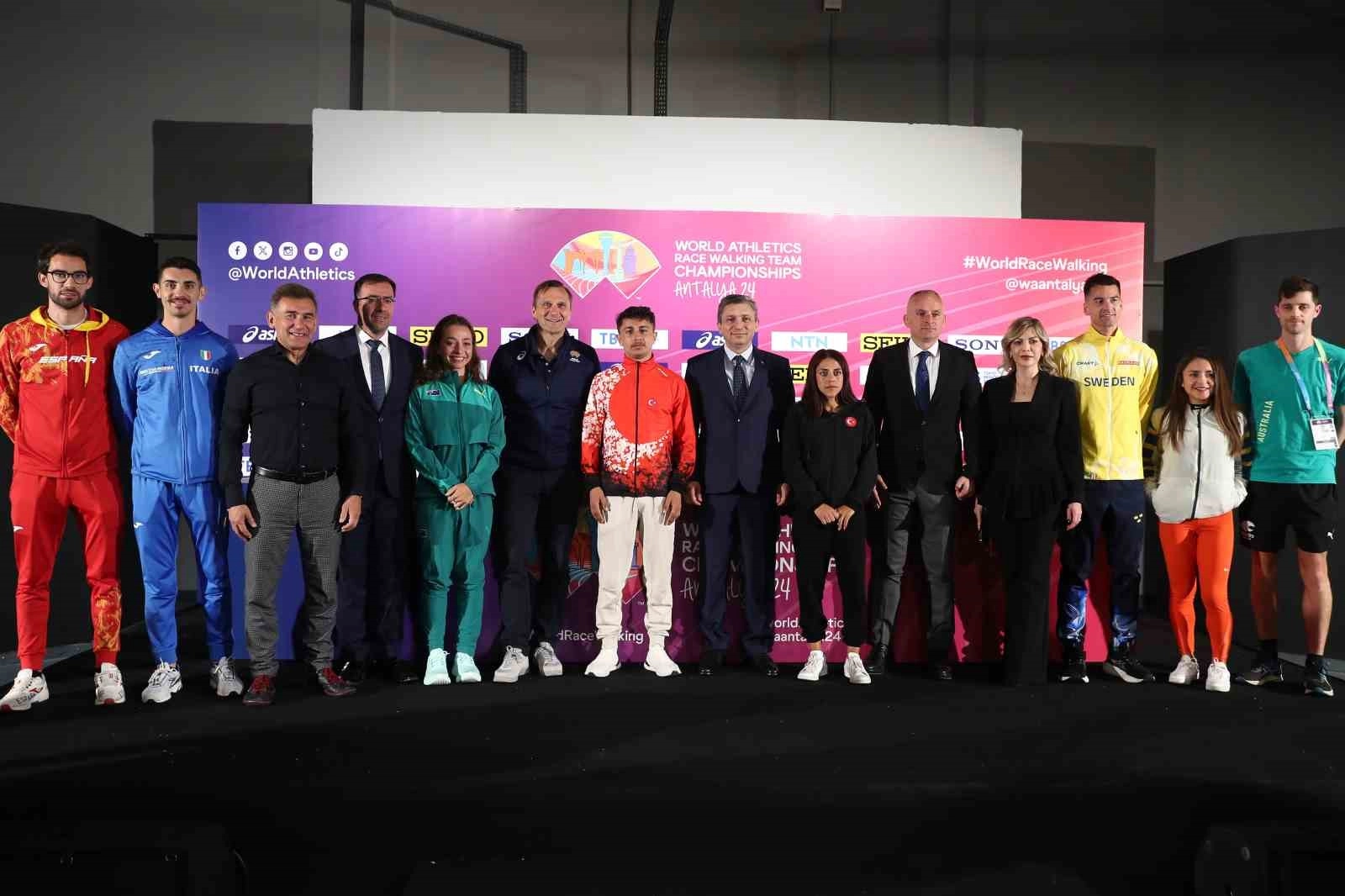 Dünya Yürüyüş Şampiyonası, yarın 52 ülkeden 431 sporcunun katılımıyla Antalya'da gerçekleştirilecek. Organizasyon öncesi Antalya Dokuma Park'ta basın toplantısı düzenlendi. Toplantıya Antalya Valisi Hulusi Şahin, Türkiye Atletizm Federasyonu Başkanı Fatih Çintimar, World Athletics (WA) Üst Yöneticisi (CEO) Jon Ridgeon, organizasyonun elçisi dünya ve olimpiyat şampiyonu Robert Korzeniowsk, milli atletler Meryem Bekmez ve Salih Korkmaz ile diğer ilgililer katıldı.