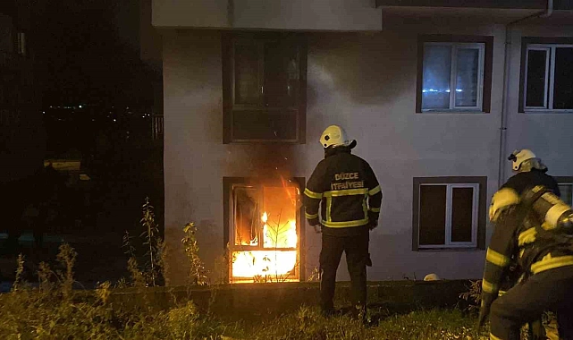 Olay, Konuralp 505. Sokak üzerinde bulunan 5 katlı binanın 1. katında meydana geldi. Alınan bilgilere göre, bir apart firmasına ait olan evde belirlenemeyen bir sebeple yangın çıktı. Alevlerin yükseldiğini gören vatandaşlar durumu Düzce Belediyesi İtfaiye Müdürlüğü'ne bildirdi. Kısa süre içerisinde bölgeye gelen ekipler alev topuna dönen evdeki yangını kısa süre söndürdü. Soğutma çalışması yapılan evde maddi hasar meydana gelirken, olayla ilgili inceleme başlatıldı.