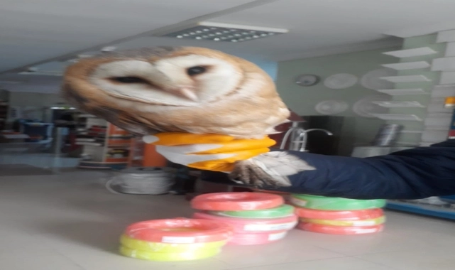 Düzce'nin Yığılca ilçesinde bir iş yerine giren peçeli baykuş, doğal ortamına bırakıldı.