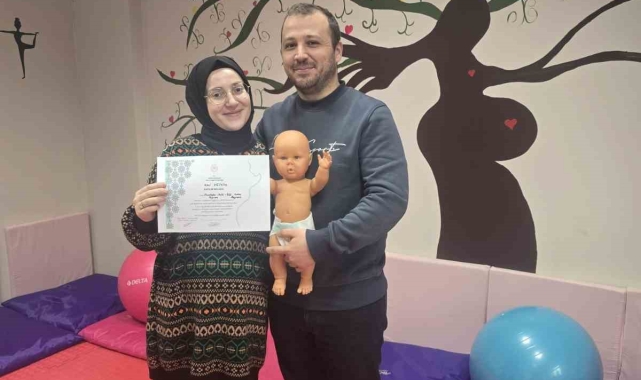 DÜZCE(İHA) – Düzce Sağlık Müdürlüğü Sağlıklı Hayat Merkezi Gebe Okulunda anne adayları doğuma hazırlandığı gibi baba adayları da eğitime dahil ederek, onları bebekli hayata hazırlıyor.