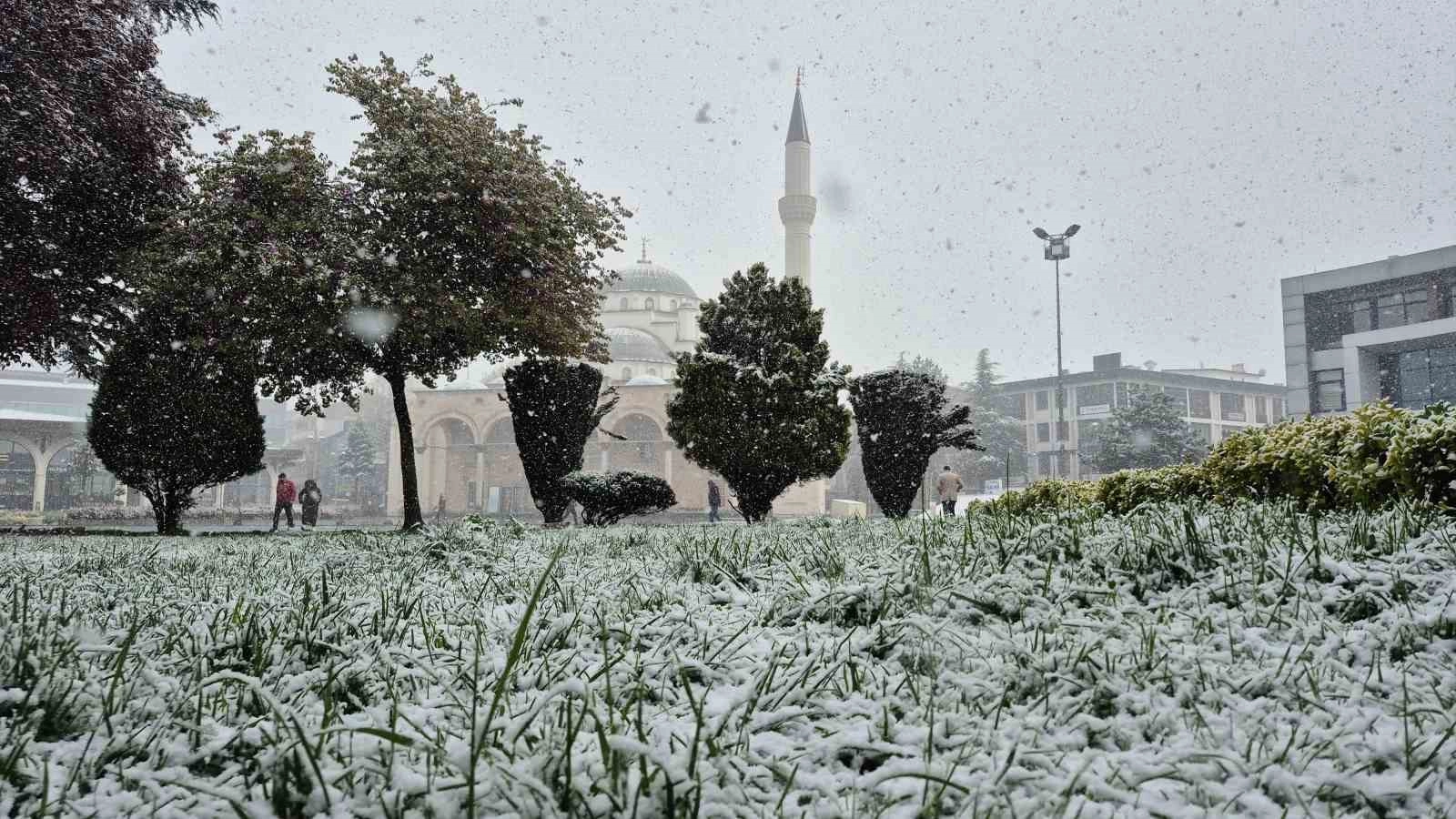 DÜZCE (İHA) – Düzce'de etkili olan kar yağışıyla birlikte kent merkezi beyaza büründü.