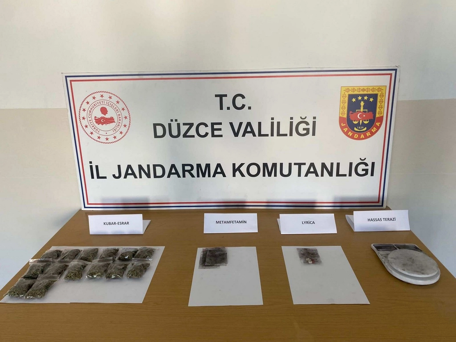 Düzce İl Jandarma Komutanlığı ekiplerince gerçekleştirilen uygulamada 200 gram kubar esrar, 5 gram metamfetamin, 6 gram sentetik kannabinoid (bonzai), 3 adet sentetik ecza (lyrica), 1 adet hassas terazi ve 1 adet uyuşturucu kullanma aparatı ele geçirildi. Uyuşturucu madde kullanma ve bulundurma suçunu işleyen 18 şüpheli hakkında adli tahkikat yapıldı.