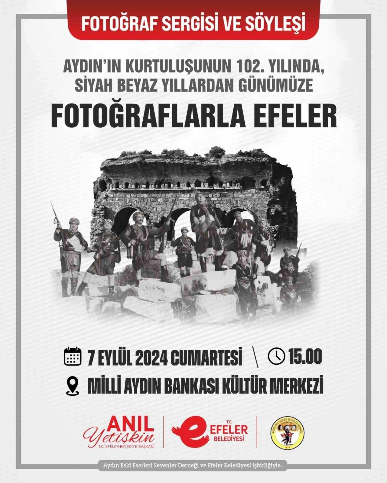 7 Eylül Cumartesi günü saat 20.30'da Fener Alayı düzenleyecek olan Efeler Belediyesi, aynı gün saat 15.00'te de Fotoğraflarla Efeler Sergisi ve söyleşiye ev sahipliği yapacak. Efeler Belediyesi ve Aydın Eski Eserleri Sevenler Derneği iş birliğiyle kapılarını açan sergide, geçmişin izlerini taşıyan siyah beyaz fotoğraflar ziyaretçilere unutulmaz bir deneyim sunacak. Milli Aydın Bankası Kültür Merkezi'nde düzenlenecek bu anlamlı etkinliğe tüm vatandaşları davet eden Başkan Yetişkin, "Vatandaşlarımız, fotoğraf sergisinde tarihin derinliklerine yolculuk yaparken, bir yandan da Aydın'ımızın kültürel ve tarihle ilgili mirasını daha yakından tanıma fırsatı bulacak. Büyük fedakarlıklarla kazanılmış bağımsızlığımızın gurur dolu anlarına hep birlikte şahitlik etmek için hemşehrilerimizi 7 Eylül Cumartesi günü saat 15.00'te Milli Aydın Bankası Kültür Merkezi'ne buluşmaya davet ediyorum" dedi.