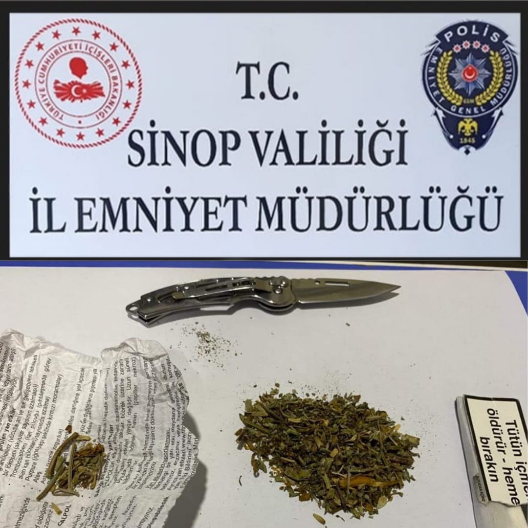 Edinilen bilgilere göre Gerze İlçe Emniyet Müdürlüğü ekiplerince; İlçe Merkezinde gelen bir ihbar üzerine şüpheli bir şahsın yapılan üst aramasında; 3 gr. esrar maddesi ve 1 adet bıçak ele geçirildiği, şüpheli şahıs hakkında gerekli yasal işlemlerin başlatıldığı öğrenildi.