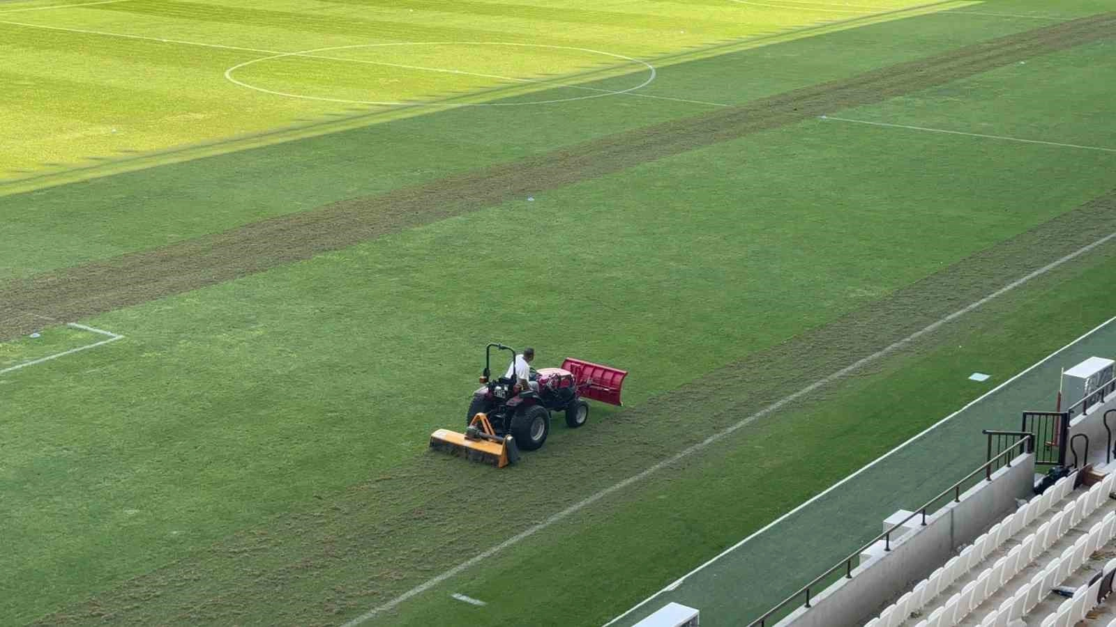 Gençlik ve Spor İl Müdürlüğü, Elazığspor'un üst üste deplasmanda oynayacağı 15 günlük süreci fırsat bilerek Atatürk Stadyumu zeminini bakıma aldı.