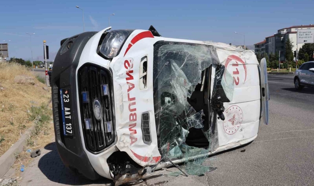 Elazığ'da hasta taşıyan ambulans ile aracın çarpışması sonucu meydana gelen trafik kazasında 5 kişi yaralandı. Takla atarak durabilen ambulansın hasta taşıdığı öğrenildi.