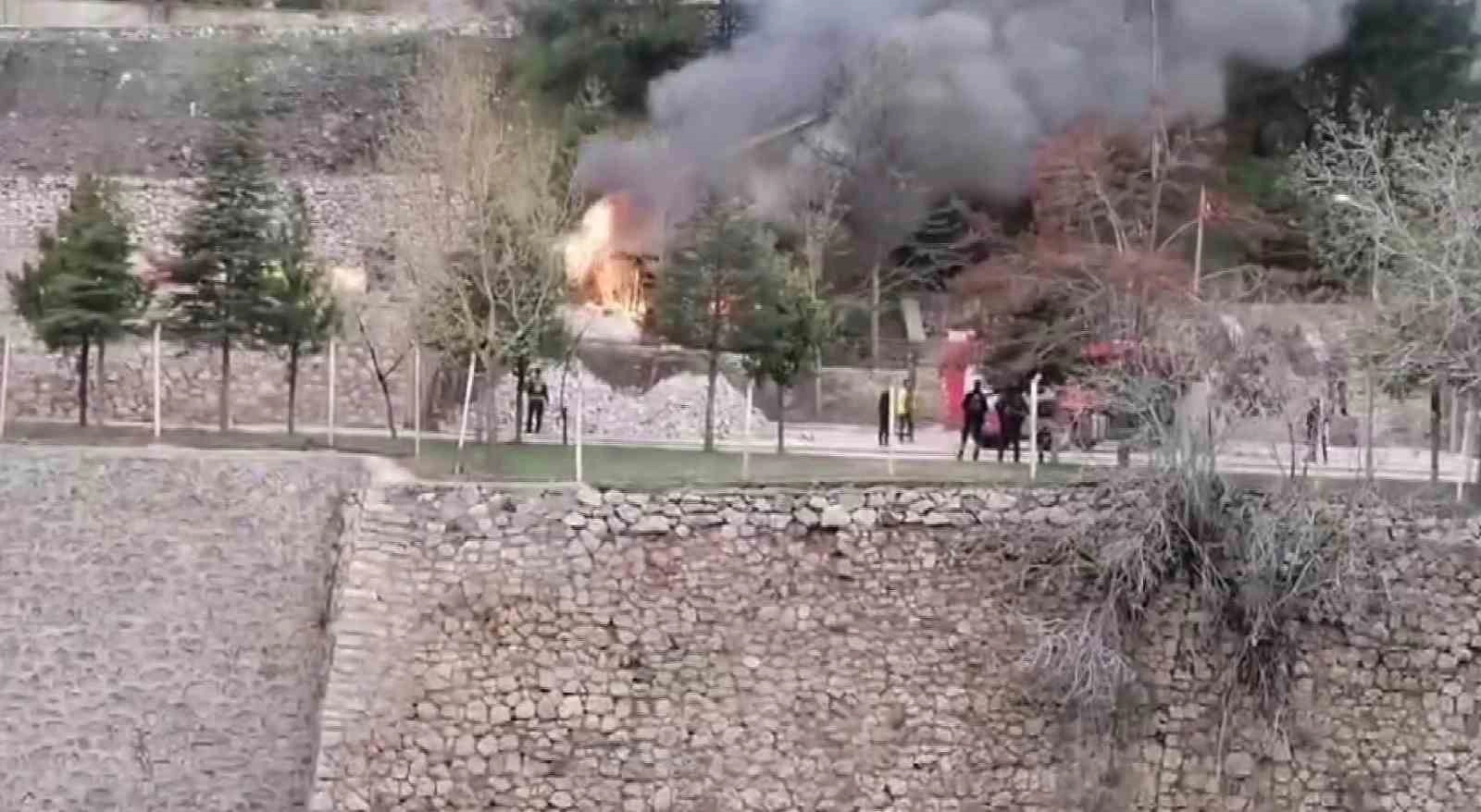Elazığ'ın Maden ilçesinde belediye binası yanında bulunan bir konteyner alev aldı. Olay yerine gelen itfaiye aracında yaşanan arıza nedeniyle yangına zamanında müdahale edilemeyince konteynerın küle döndüğü iddia edildi.