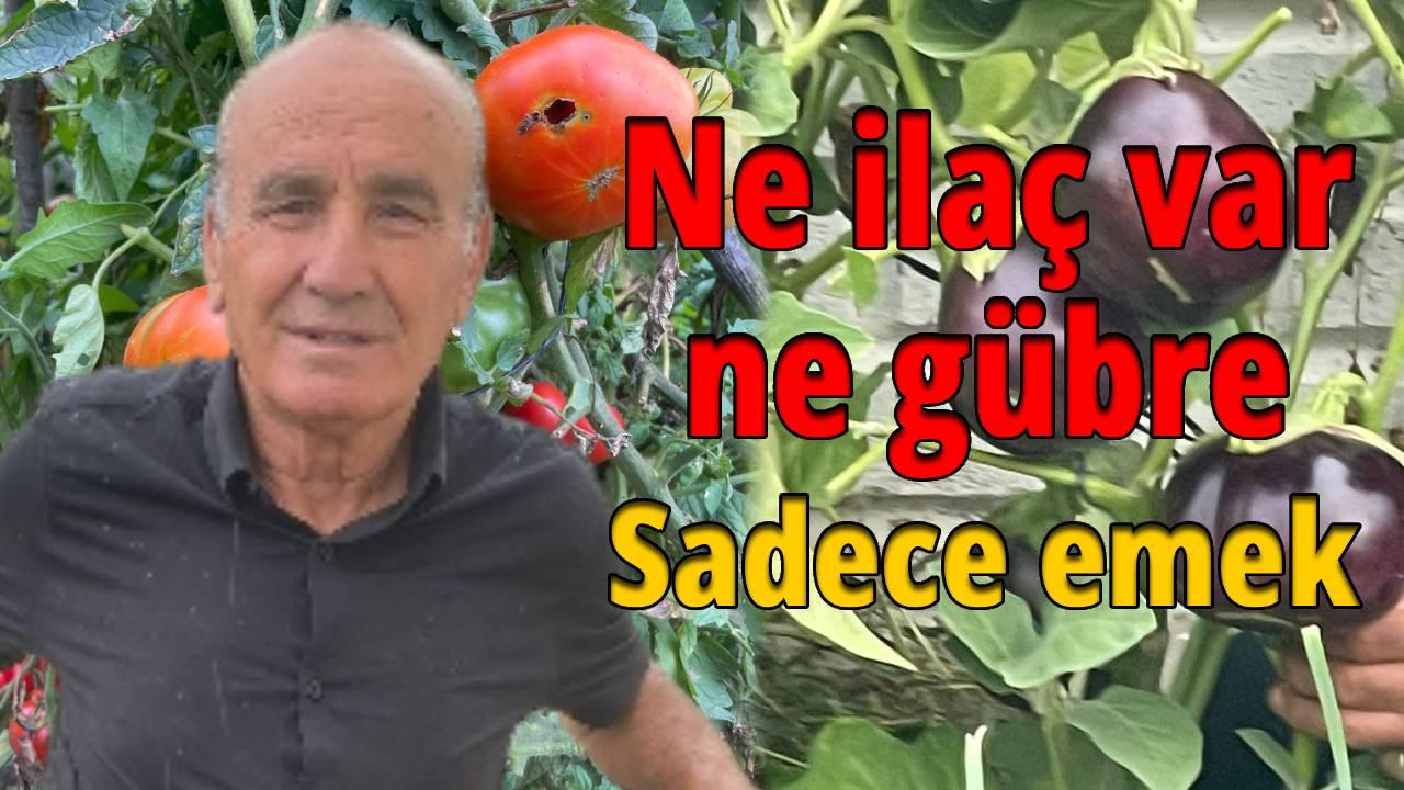 Sadece hayvan gübresi kullandığını, sulamayı da toprağın altından (taban sulama yöntemiyle) yaptığını ifade eden Ahmet Ertuğral, “Bu patlıcan dalında duramadı, mecburen destekle ayakta tuttum. Tamamen ilaçsız, katkısız, saf bir üretim yaptım. 10 yıldır aynı tohumdan fide yetiştiriyorum. Emek verdim ama sonucunu da aldım,” dedi.