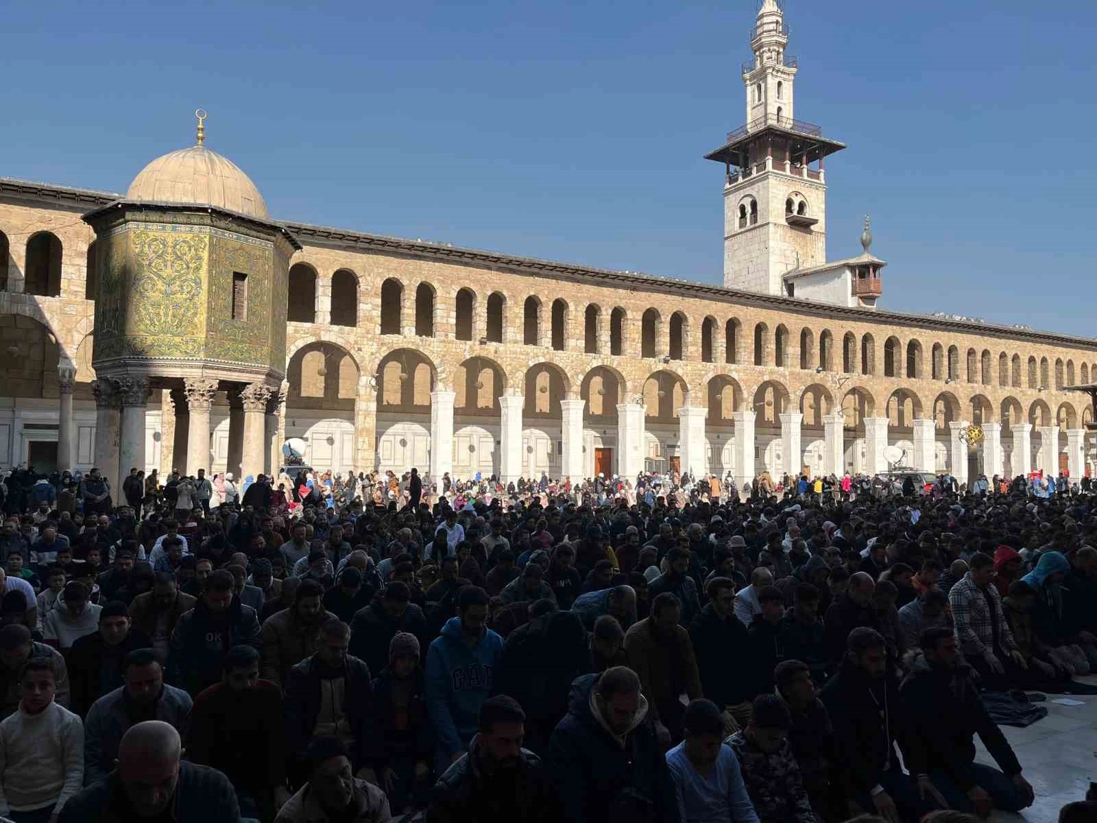 Suriye'nin başkenti Şam'da halk, Esad rejiminin devrilmesinin ardından dördüncü cuma namazını kılmak üzere tarihi Emevi Camii'ne akın etti. Emevi Camii'ne gelenler, namaz öncesi cami ve çevresinde yoğunluk oluşturdu. Yüzlerce kişi avluda ve içeride saf tutarak cuma namazını kıldı.