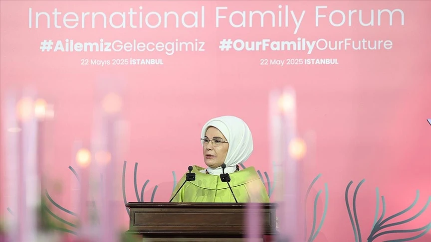 Emine Erdoğan, sofra başında toplanmaktan, birlikte kaliteli zaman geçirmekten ve akraba ziyaretlerinden geri durulmaması gerektiğini kaydederek, "Evlenme yaşını ileri atan bahanelere ve felaket kehanetleriyle doğum sayılarının geriletilmesine geçit vermemeliyiz. Yaşlı ve yalnızlaştırılmış bir dünya insanlığın kaderi olmamalıdır. El ele vererek güçlü ve müşterek bir söylemle, aileyi dünyada yeniden hak ettiği saygın konuma yükseltebiliriz. Aile hususunda sizlerle gönül birliğimiz olduğunu biliyor, iş birliğine de açık olduğumuzu belirtmek istiyorum." değerlendirmesinde bulundu.