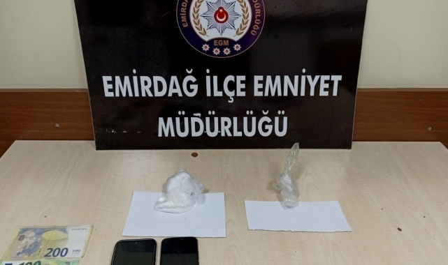 Emirdağ İlçe Emniyet Müdürlüğü ekipleri ilçesinin huzur ve asayişi çalışmalarını sürdürüyor. Bu çerçevede ekipler 1 ev, 1 iş yeri ve 2 araçta arama yaptı. Yapılan aramada, 12,63 gram uyuşturucu madde, 10,75 gram uyuşturucu madde, 2 adet cep telefonu ve nakit para ele geçirildi. Konu ile ilgili olarak A.H. isimli şahsa "uyuşturucu madde ticareti yapma" suçu kapsamında adli işlem yapıldı, çıkarıldığı mahkemece tutuklanarak cezaevine gönderildi.