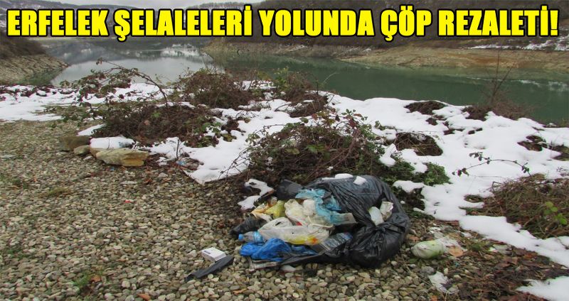 Kimliği belirlenemeyen kişi veya kişilerce atılan çeşitli atıklar Erfelek Şelaleleri yolunda bir çöplük manzarasını andırıyor.