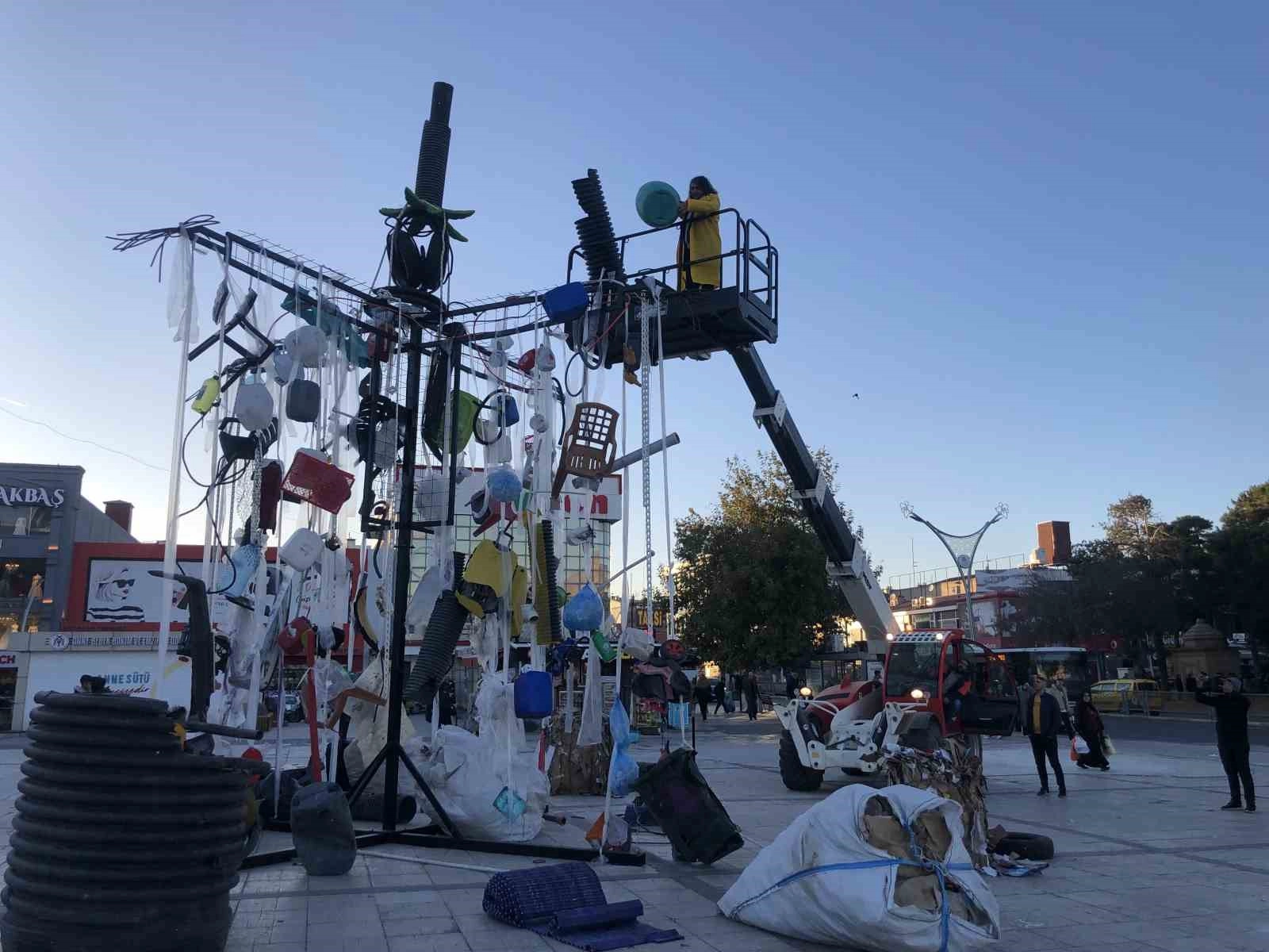 Erzincan Binali Yıldırım Üniversitesi Güzel Sanatlar Fakültesi Dekanı Prof. Dr. Mehmet Kavukcu, sıra dışı sanat performansıyla çevre kirliliğine dikkat çekti.