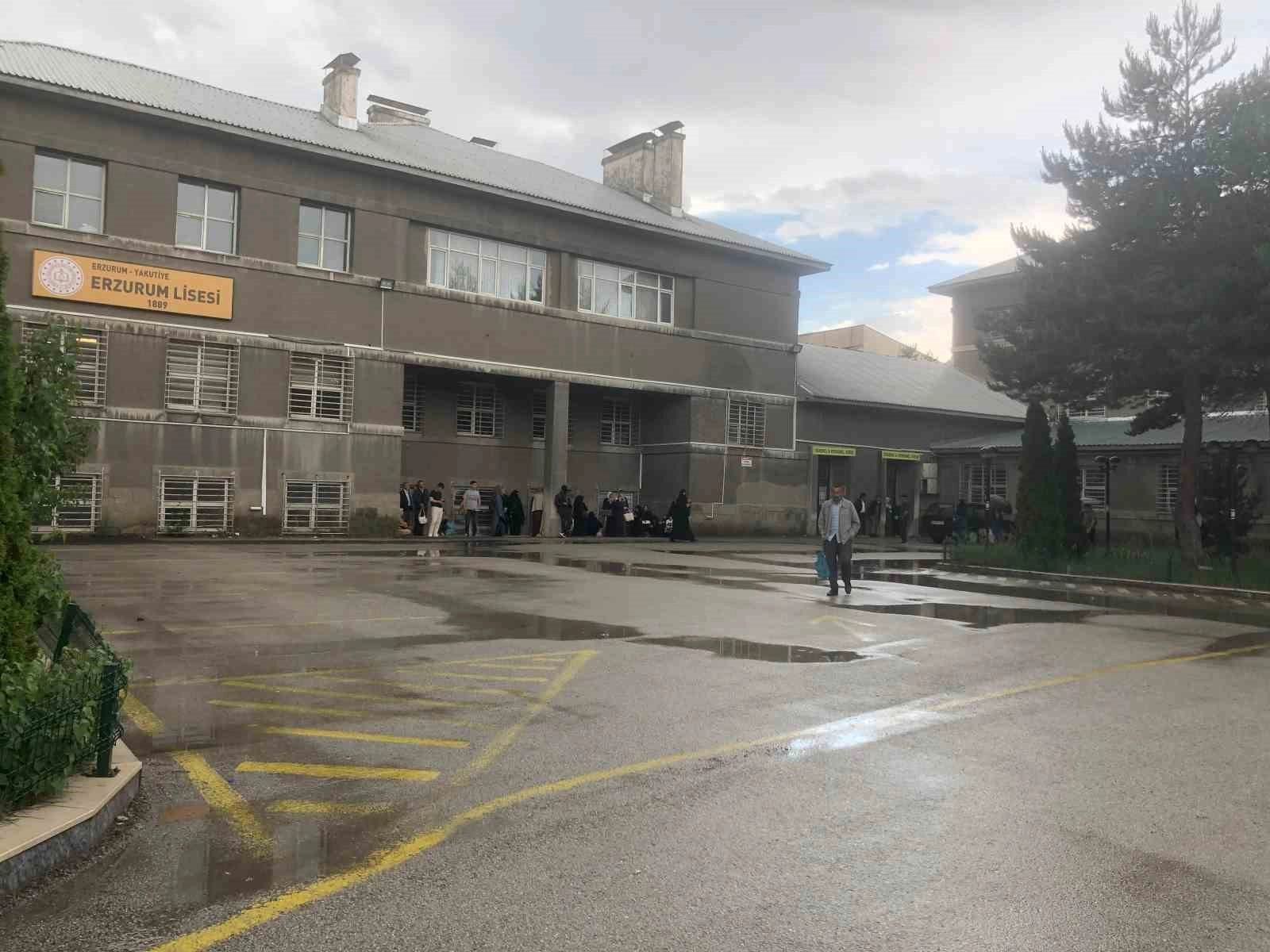 Sınava geç kalan bazı öğrenciler son dakikalarda salona koşarak girerken aileler okul önlerinde yağışlı havaya rağmen beklemeye devam ettiler.