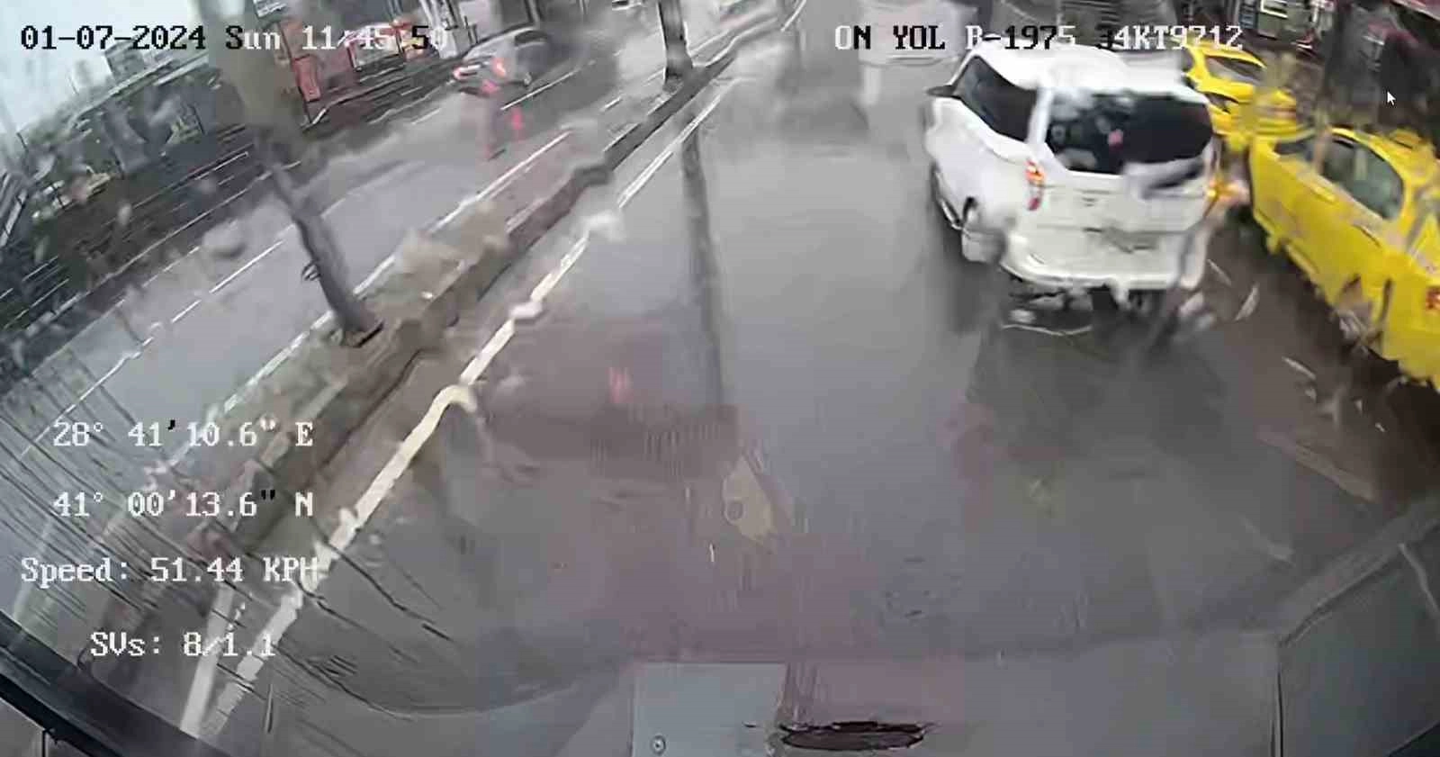 Esenyurt'ta seyir halindeki İETT otobüsünün yol kenarındaki direğe çarpması sonucu 6 kişinin yaralandığı kaza anı, araç içi kamerası tarafından saniye saniye kaydedildi.