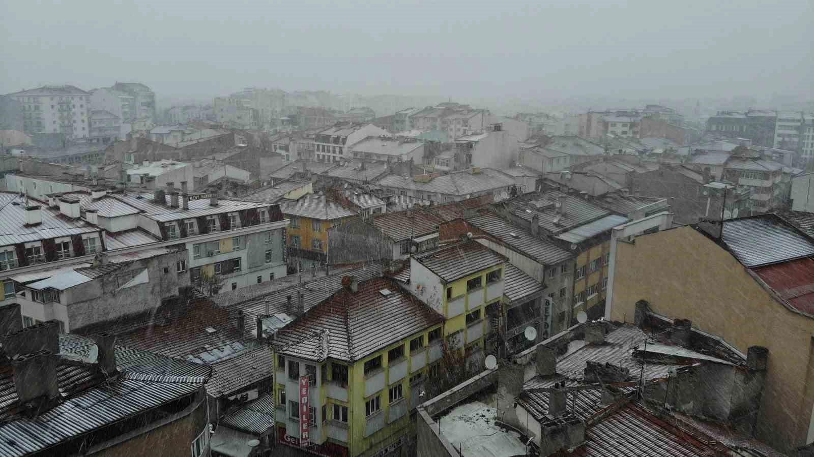 Eskişehir'de meteorolojinin uyarısının ardından yılın ilk karı da kent merkezinde yağdı.