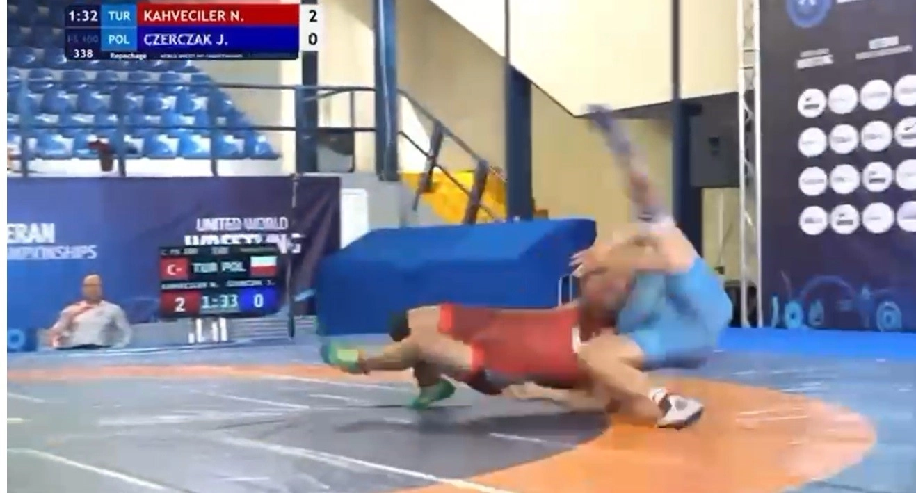 Dünya Veteranlar Güreş Şampiyonası çeyrek final mücadelesinde Nazmi Kahveciler'in Polonyalı rakibine yaptığı 'çipe' oyunu sosyal medyada izlenme rekorları kırdı. Temizlik fabrikasında işçi olarak çalışan dünya şampiyonu güreşçinin hareketi, turnuvanın en teknik ve jenerik oyunu seçildi.