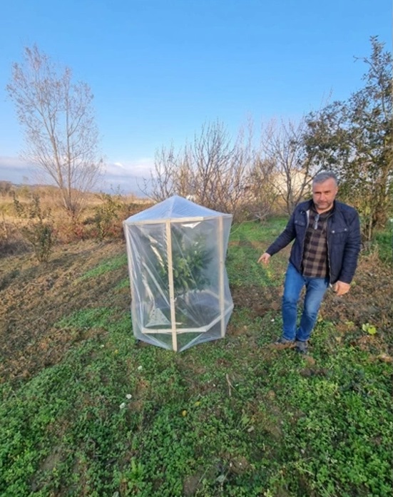 Sinop’ta yaşayan Atilla Korkmaz, Mertoğlu köyünde yaptığı naylonlu mantolama sistemi sayesinde mandalina ve limon fidelerini soğuktan koruyor. Ayrıca Korkmaz, ağaçların su ihtiyacını da yaptığı sistemle düşürüyor.