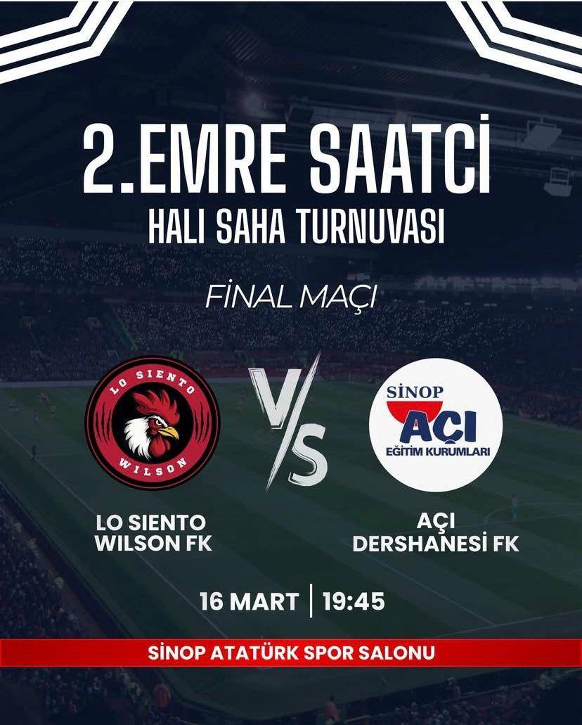 Final mücadelesi bugün saat 19.45’te Sinop Atatürk Spor Salonu halı sahasında oynanacak. Karşılaşmanın ardından Sinop Belediye Başkanı Metin Gürbüz’ün de katılımı ile kupa töreni düzenlenecek.