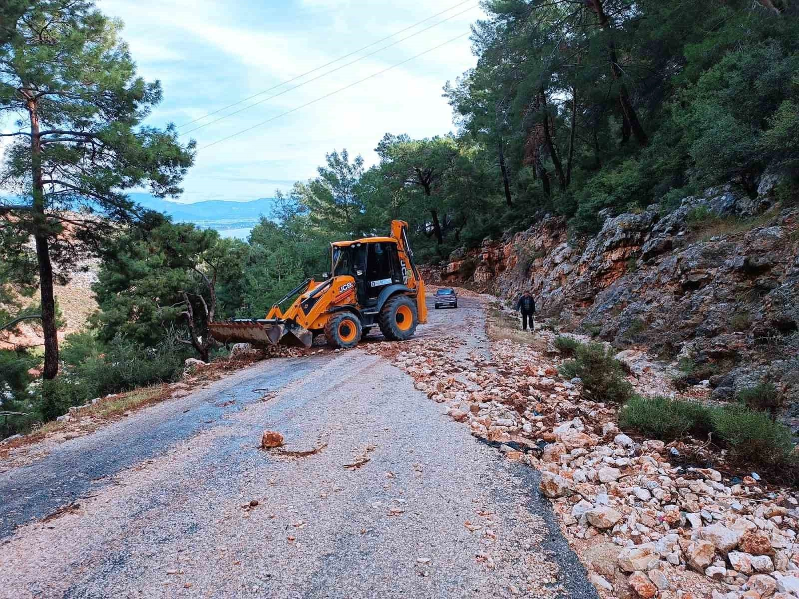 Kırsal Hizmetler Daire Başkanlığı ekipleri taş ve mıcır kayması yaşanan yolun trafiğe kapanması nedeniyle ve muhtemel kazaları önlemek amacıyla greyderle yolu temizledi. Ekipler yolu kapatan taş ve çamur yığınlarını iş makineleri ile kaldırarak trafik akışını ve güvenliğini sağladı.