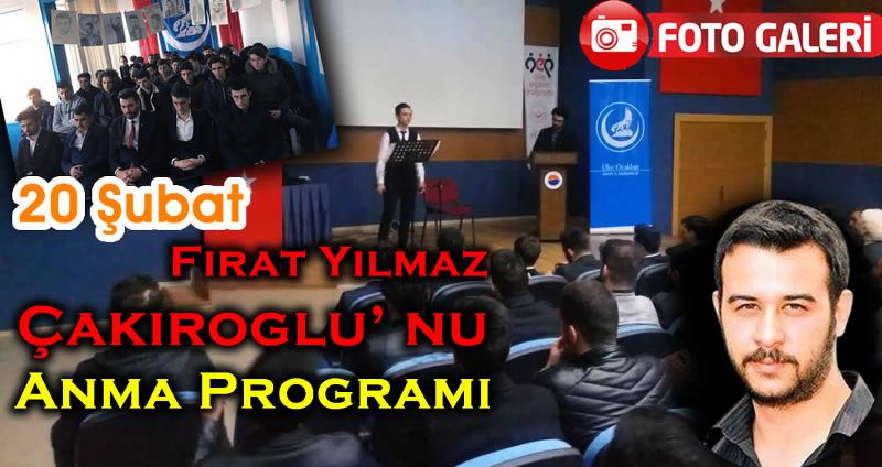 Üniversite teşkilatının Fen-Edebiyat Fakültesi konferans salonunda gerçekleştirdikleri program, saygı duruşu ve İstiklal Marşı, Kur'an-ı Kerim okunması ve Teşkilat Başkanı Mahmut Ateş'in konuşmalarıyla devam etti. Ateş; "Fırat Yılmaz Çakıroğlu ağabeyimizin de dediği gibi; Bu mücadeleyi 20 kişi kalsak da, 30 kişi kalsak da devam ettireceğiz, ne şehitlerimizi, ne de davamızı unutmayacağız, unutturmayacağız" diyerek başladığı konuşmasında programa katılanlara teşekkür etti. Şiir dinletisi, "Bizde Fıratlar Ölmez" isimli bestenin seslendirilmesi ve Ülkücü Yemini ile program son buldu.