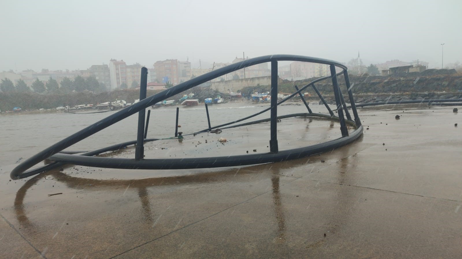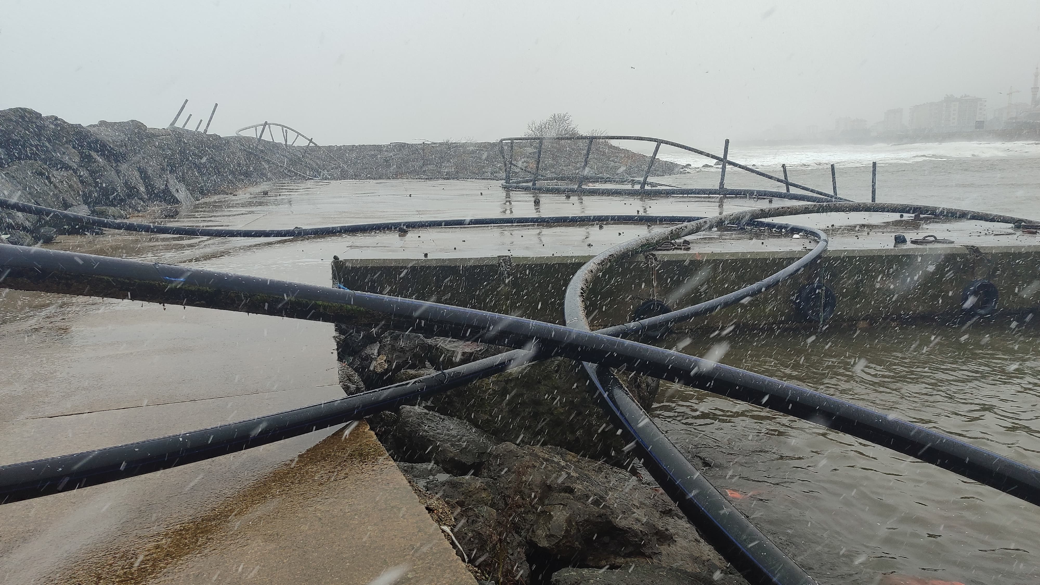Fırtınanın gücüyle dalga kıranları aşarak liman içine kadar giren kafesler dalgaların etkisi ile parçalanırken, maddi hasar oluştu.