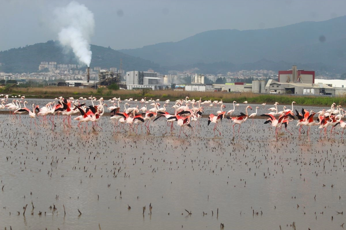 Her yıl olduğu gibi bu yıl da allı turna olarak bilinen flamingolar, Aydın'ın önemli tarım bölgelerinden Söke Ovası'na gelmeye başladı. Son günlerde etkili olan yağışların ardından su ile dolan tarlalara inen flamingolar eşsiz manzara oluştururken, Söke Ovası'nı şenlendirdi. İnce bacakları ve uzun boyunları ile tarlalarda balerin gibi süzülen flamingoların Söke Ovası'nda doğanın tüm güzelliğini ortaya çıkardığını ifade eden Ekosistemi Koruma ve Doğa Sevenler Derneği (EKODOSD) Başkanı Bahattin Sürücü, endüstriyel atıkların ve çevre sorunlarının habitat kaybına yol açtığına dikkat çekti.