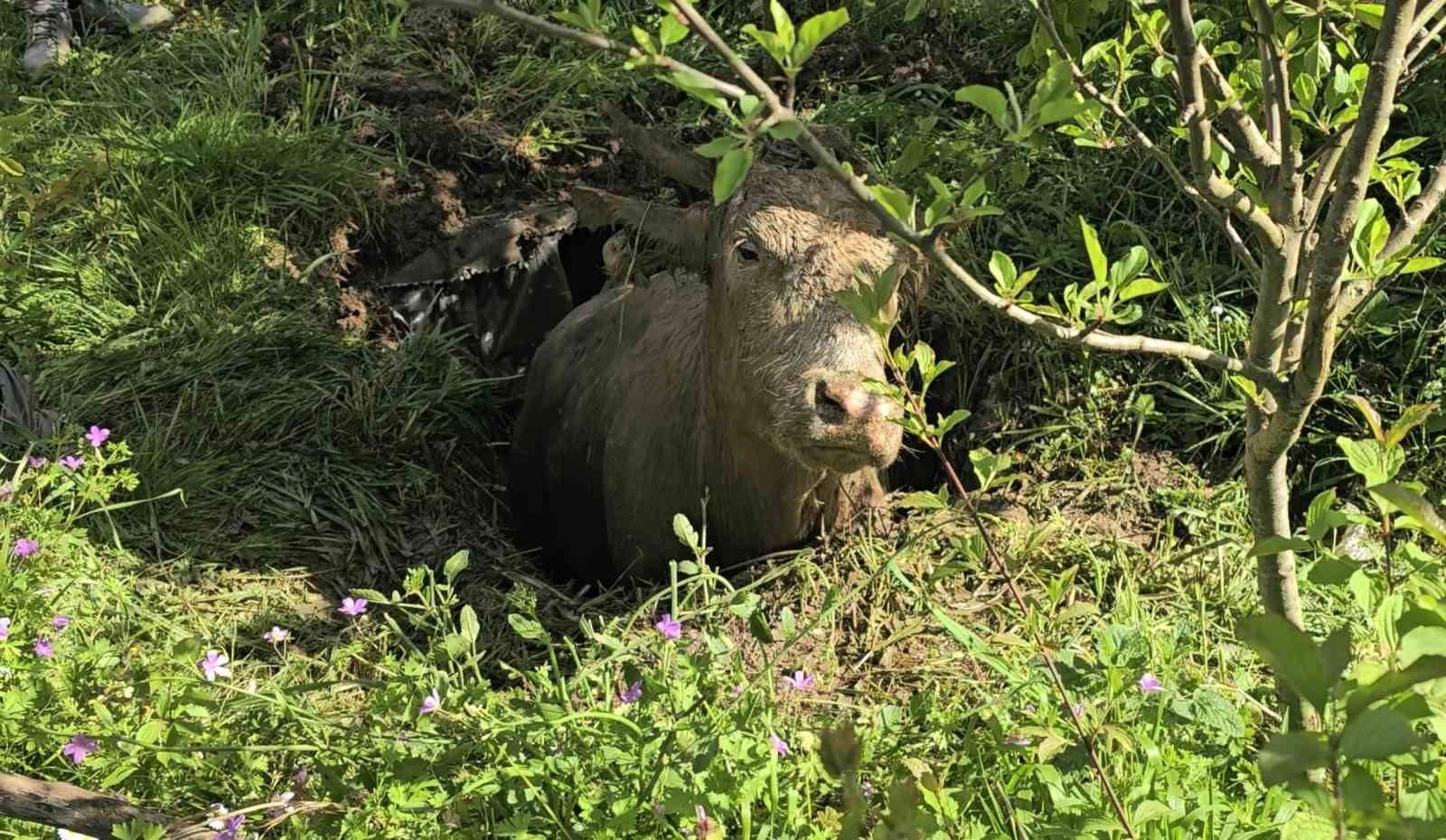 Olay, Cide ilçesi Kasım Mahallesi Eşme Sokak'ta meydana geldi. Edinilen bilgiye göre, bahçedeki foseptik çukuruna düşen ineği gören vatandaşlar durumu Cide Belediyesi'ne bildirdi. İhbar üzerine çalışma başlatan belediye ekipleri, iş makinesi yardımıyla hayvanı çıkarttı. İneğin yapılan kontrollerde herhangi bir sağlık bir sorunun olmadığı öğrenildi.