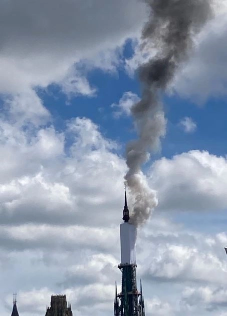 Fransa'daki Rouen Katedralinin kulesinde devam eden yenileme çalışmaları sırasında yangın çıktı.