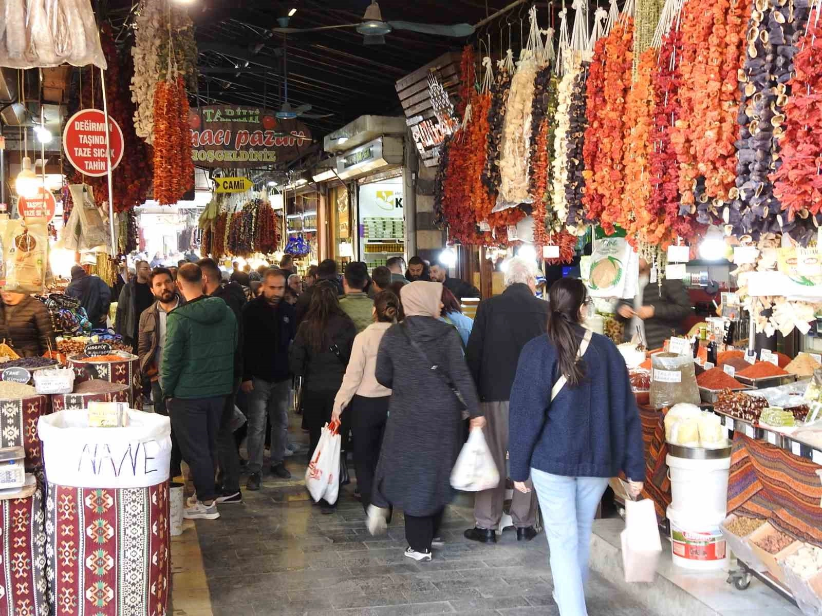 Gaziantep'te yaklaşan Ramazan Bayramı öncesi alışverişlerini son güne bırakmak istemeyen vatandaşlar, tarihi çarşılarda yoğunluk oluşturdu.