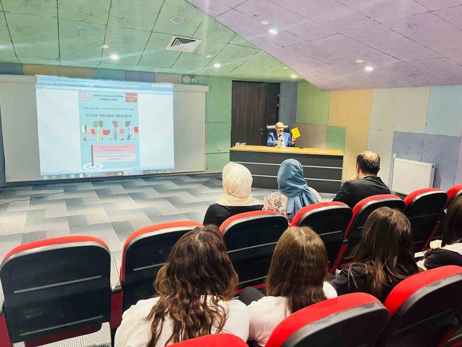 Kütahya'nın Gediz ilçesinde İlçe Milli Eğitim Müdürlüğü tarafından yürütülen "Okudum Tavsiye Ediyorum" projesi kapsamında, Kız Mesleki ve Teknik Anadolu Lisesi'nde önemli bir etkinlik düzenlendi. İlçe Milli Eğitim Müdürü Mahmut Bahadur'un katılımıyla gerçekleşen programda, öğrencilerle kitaplar üzerine verimli bir sohbet gerçekleştirildi.