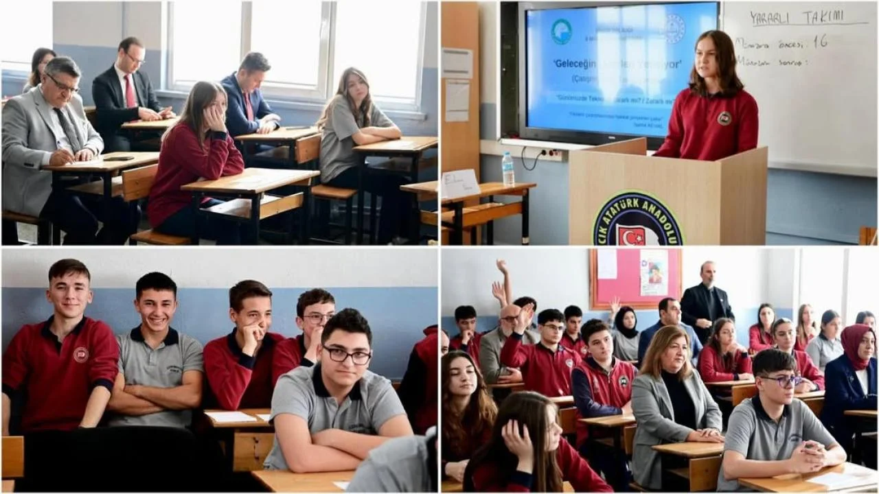 10.sınıf öğrencilerinden oluşturulan takımlar, “Günümüzde teknoloji yararlı mı, zararlı mı?” sorusu üzerinde münazara gerçekleştirdi. Etkinlikte, farklı sınıflardan seçilen öğrenciler jüri olarak görev aldı.