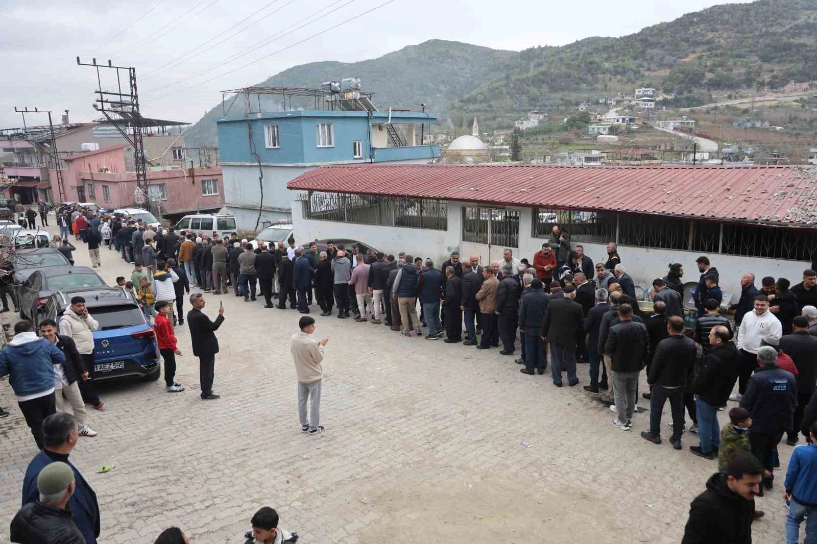 Hatay'da Osmanlı döneminden kalma toplu bayramlaşma geleneğinin devam ettiği mahallede bayramlaşmak isteyen vatandaşlar metrelerce kuyruk oluştu.
