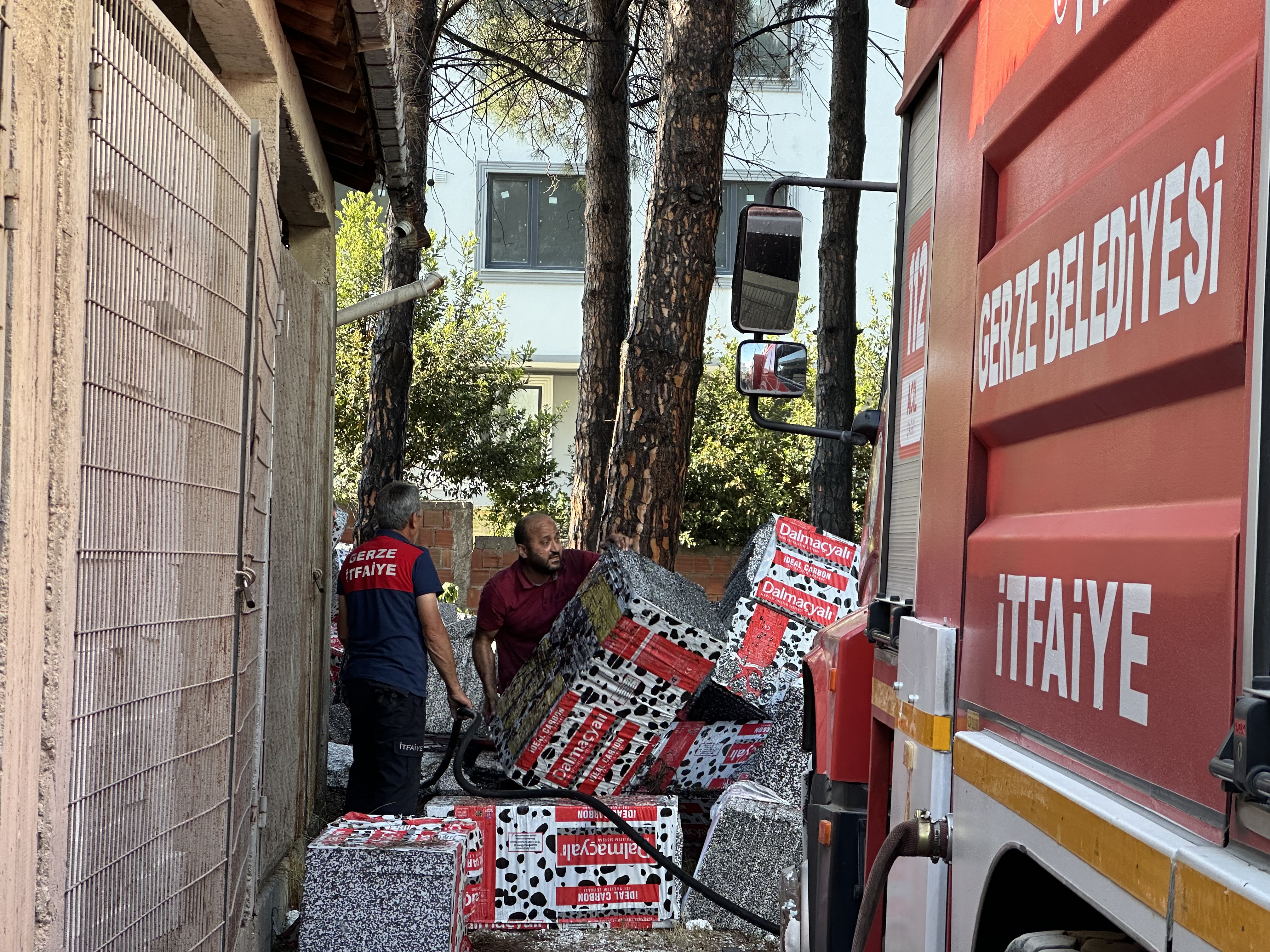 Sinop'un Gerze ilçesinde bir inşaat firmasına ait depoda çıkan yangın söndürüldü.