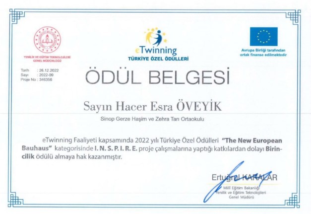 2019 yılından itibaren birçok eTwinning Projesi yürüten İlçemiz Haşim ve Zehra Tarı Ortaokulu İngilizce Öğretmeni Hacer Esra Öveyik' in I.N.S.P.I.R.E. isimli projesi Milli Eğitim Bakanlığı Yenilik ve Eğitim Teknolojileri Genel Müdürlüğü tarafından 1’ inci seçilerek ''eTwinning Türkiye Özel Ödülü'' aldı. İlçemiz Haşim ve Zehra Tarı Ortaokulu İngilizce Öğretmeni Hacer Esra ÖVEYİK tarafından 2021-2022 yılında yürütülen I.N.S.P.I.R.E.(An Inspiring Network for a Sustainable Planet and an Inclusive Renewed Education) isimli eTwinning Projesi Ulusal ve Avrupa düzeyinde Kalite Etiketi Ödülü almıştı. Öğretmenimizin bu projesi Milli Eğitim Bakanlığı Yenilik ve Eğitim Teknolojileri Genel Müdürlüğü Ulusal Destek Servisi tarafından 2022 yılı eTwinning teması kategorisinde ''The New European Bauhouse'' kategorisinde I.N.S.P.I.R.E Projesiyle Birinci seçilerek, eTwinning Türkiye Özel Ödülü almaya layık görüldü. Öveyik’ in bu projesi (I.N.S.P.I.R.E.(An Inspiring Network for a Sustainable Planet and an Inclusive Renewed Education) aynı zamanda bir Erasmus+ KA210SCH Öğrenci Hareketliliği Projesine dönüştürüldü ve Polonya Ulusal destek servisi tarafından kabul edildi. ''Sürdürülebilir Bir Gezegen ve Kapsayıcı Yenilenmiş Eğitim için İlham Verici Bir Ağ'' (I.N.S.P.I.R.E.) isimli projesiyle, katılımcı kuruluşların, sivil katılım ve katılım konularında kapasitelerini artırmak, onları ortak değerlerin geliştirilmesinde nitelikli ilham verenler haline getirmek, kendilerinin, insanlığın ve gezegenin geleceğinden sorumlu bir insan olarak yaşam boyu görevlerinin bilincinde olan bireyler yetiştirmelerini sağlamak temel olarak amaçlandı. Haşim ve Zehra Tarı Ortaokulumuzun da ortak olduğu bu projede Hırvatistan, Polonya, Slovakya ve Türkiye'den toplam 5 katılımcı okul daha bulunmakta olup; proje bünyesinde hem okullarda bireysel, hem de ortak paydaşlarla birlikte online etkinlikler ve partner okullara ziyaretler düzenlenmektedir. Dışişleri Bakanlığı Avrupa Birliği Başkanlığı Avrupa Birliği Eğitimi Gençlik Programları Merkezi Başkanlığı tarafından finanse edilen Öğretmenimizin Erasmus+ KA210SCH Öğrenci Hareketliliği Projesi kapsamında 18-22 Eylül 2023 tarihleri arasında Haşim ve Zehra Tarı Ortaokulu adına projeyi yürüten İngilizce öğretmenimiz Hacer Esra ÖVEYİK ile birlikte aynı okul İngilizce öğretmeni Eminehatun KARAASLAN, öğrencilerimiz Uraz DANACI, Sümeyye DİNÇ ve Zeki Poyraz COŞKUN proje katılımcısı olarak Hırvatistan'a giderek öğrenci hareketliliğini gerçekleştirmiş oldular. Öğretmenlerimiz ve öğrencilerimiz Hırvatistan'da 4 gün boyunca sürdürülebilirlik bağlamında yapılan çalışmaları yerinde inceleyip, gözlemleyerek, 4 farklı ülkeden proje ortakları ile birlikte workshoplara katılmışlar, sürdürülebilir yaşam tarzı ile ilgili seminerler almışlardır. Bütün proje ortakları hep beraber doğa gezileri, sürdürülebilir çiftlik gezileri, hayvanat bahçesi ziyaretleri, bilim parkları ve çeşitli müze ziyaretlerinde bulunmuşlardır. Öğrencilerimiz Hırvat partnerlerinin evlerinde konaklayıp kültürler arası etkileşimi en derinden yaşamışlardır. Bütün bu proje etkinliklerinden sonra veda gecesinde tüm proje ortaklarına Katılım Belgesi verilerek, öğrencilerimize çeşitli hediyeler sunulmuştur. Proje tamamlandığında ise öğretmen ve öğrencilerimize Europas Hareketlilik Belgesi verilecektir. Projenin bir sonraki hareketliliği 2024/Ocak ayı içinde Slovakya' ya olacaktır. 2024/Şubat ayında ise 4 farklı ülkeden 5 proje ortağı okul, Haşim ve Zehra Tarı Ortaokulumuzu ve İlçemizi ziyaret edeceklerdir. İlçe Milli Eğitim Müdürü Yılmaz CEYLAN; I.N.S.P.I.R.E.(An Inspiring Network for a Sustainable Planet and an Inclusive Renewed Education) aynı zamanda bir Erasmus+ KA210SCH Öğrenci Hareketliliği Projesi ile Bakanlığımız Yenilik ve Eğitim Teknolojileri Genel Müdürlüğü tarafından 1. seçilerek ''eTwinning Türkiye Özel Ödülü'' almaya layık görülen Öğretmenimiz Hacer Esra ÖVEYİK'i ve öğrencilerimizi tebrik ederek, başarılarının devamını diledi.