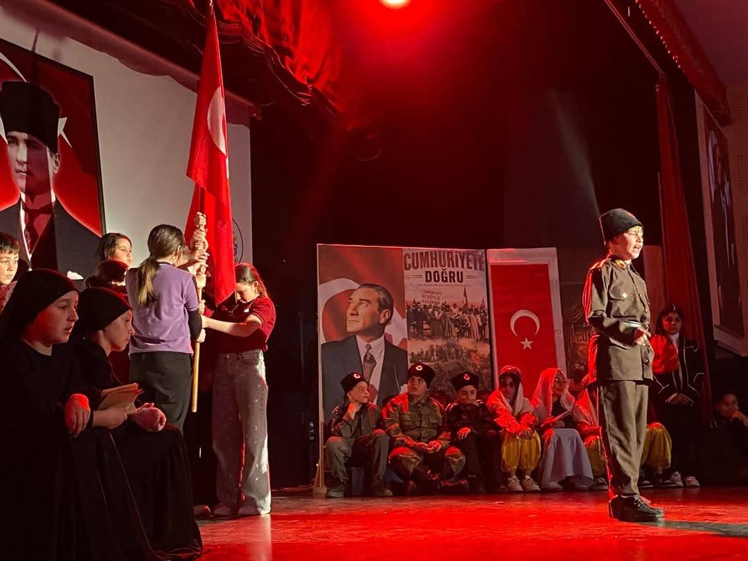 Cumhuriyet’in kuruluş sürecini ve milli mücadele ruhunu konu alan "Cumhuriyet’e Doğru" adlı oyun, sahnelenmeye başladığı andan itibaren salonda duygu dolu anlar yaşattı. Ailelerin ve gençlerin yoğun ilgi gösterdiği etkinlikte, öğrencilerin profesyonel oyuncuları aratmayan performansları dikkat çekti.