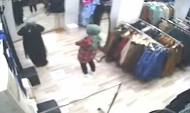 Karabük'te bir giyim mağazasındaki hırsızlık anları güvenlik kamerasına yansıdı.