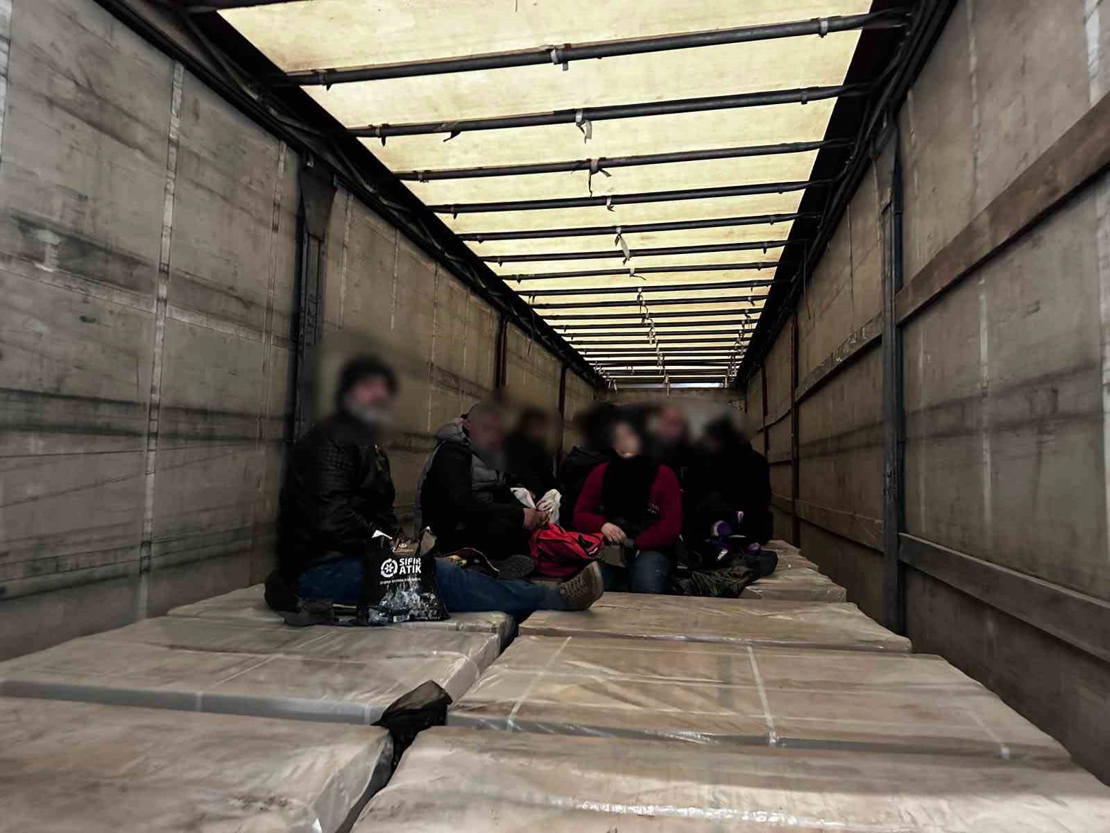 Burada dorsedeki yükler üzerinde hareket halinde oldukları görülen ilk tırda 24 ve ikinci tırda ise 27 düzensiz göçmen yakalandı.