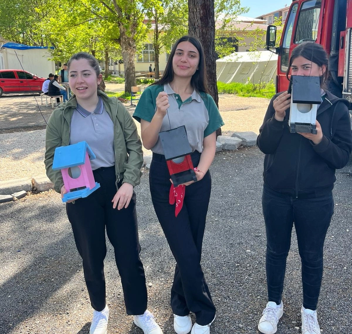 Adıyaman Gölbaşı Mesleki ve Teknik Anadolu Lisesi öğrencileri, "Ben her yerde varım" projesi kapsamında kuşlar için ağaç dallarına yuvalar bıraktı.