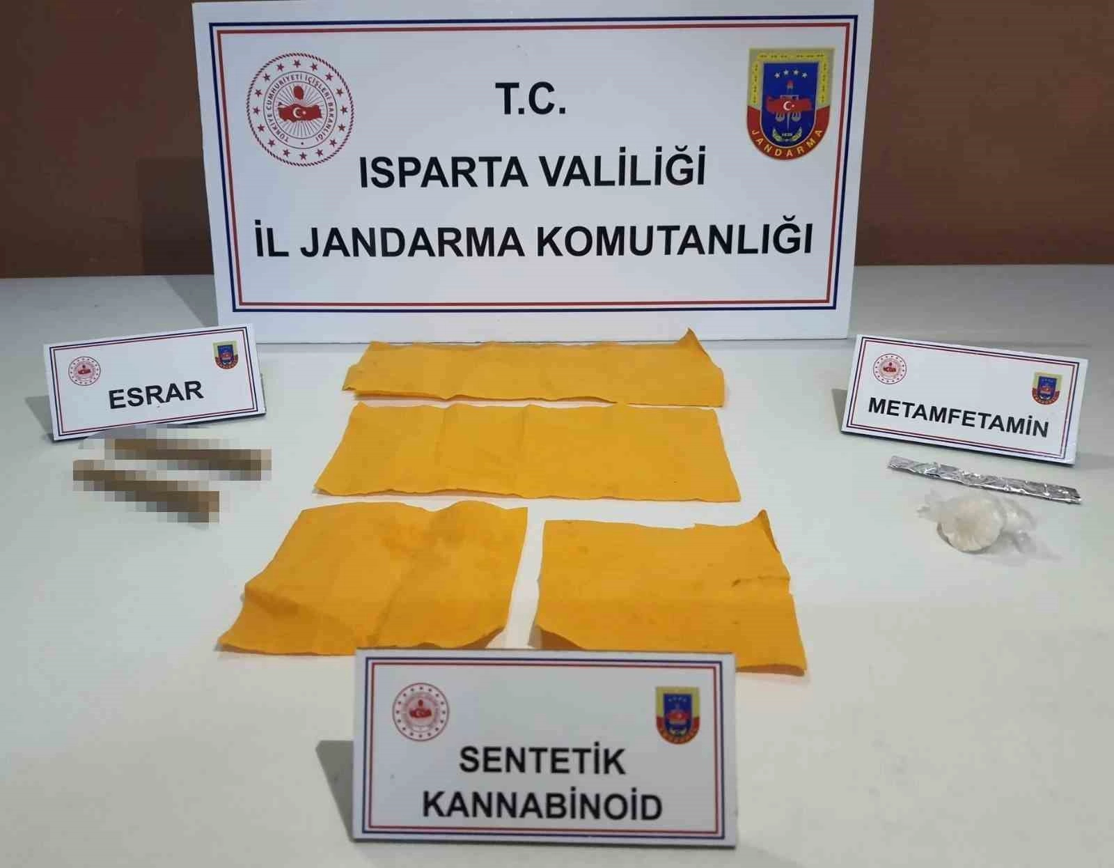 Isparta İl Jandarma Komutanlığı ekipleri, uyuşturucuyla mücadele kapsamında Gönen ilçesinde gerçekleştirdiği operasyonda 2 bin 500 kullanımlık sentetik cannabinoid emdirilmiş kağıt ve 5 gram metamfetamin ele geçirdi. Şüpheliler gözaltına alınırken, olayla ilgili adli işlemler başlatıldı.