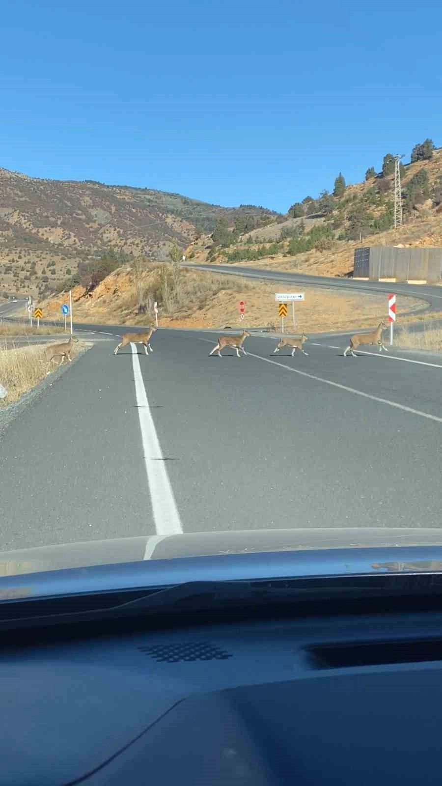 Gümüşhane'nın yüzde 60'ını oluşturan dağlarda son yıllarda etkin av koruma çalışmaları ve halkın bu konudaki duyarlılığıyla sayıları 3 bine yaklaşan yaban keçileri, sık sık vatandaşların karşısına çıkıyor. Sarp ve yüksek kayalıklarda yaşamlarını sürdüren yaban keçileri, bu kez Kelkit-Gümüşhane karayolunda görüldü. "Gümüşhane dağlarının süsü" olarak nitelendirilen yaban keçileri, sürü halinde bölünmüş yolda karşıdan karşıya geçerek doğal yaşam alanlarına doğru yol aldı. O sırada aracını durduran Enes Öztürk, o anları cep telefonuyla kaydederek sosyal medya hesabından paylaştı.