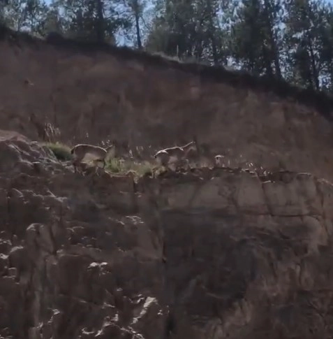 Mahallede bulunan apartmanların hemen arkasında bulunan dağlık alanda görüntülenen 3 usta tırmanıcı yaban keçisi, dik yamaçtan çıkarak daha sonra gözden kayboldu.