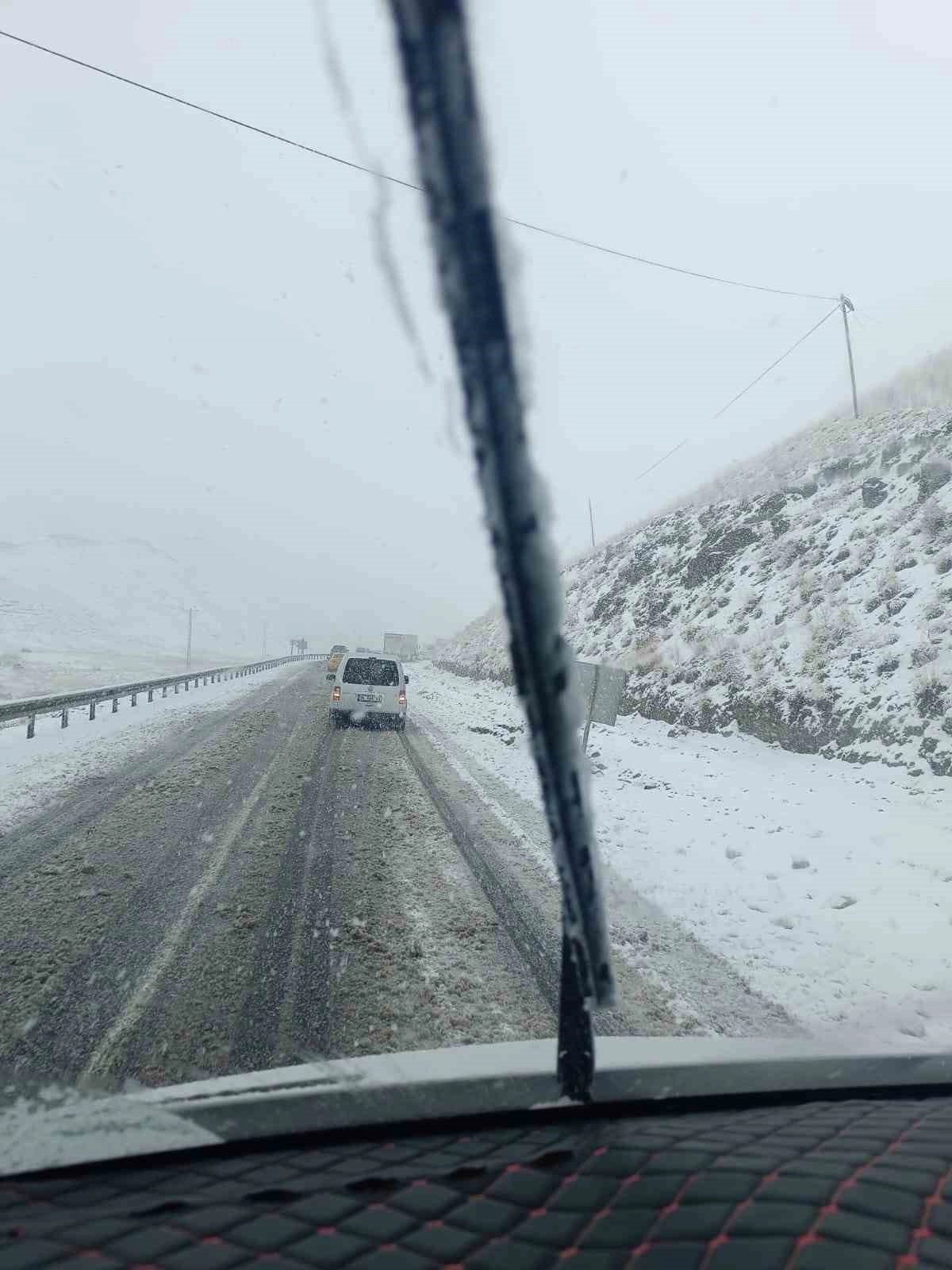 Kara yolu üzerindeki 2 bin 730 rakımlı Güzeldere Geçidi'nde başlayan kar yağışı nedeniyle sürücüler zor anlar yaşadı. Karayolları 11. Van Bölge Müdürlüğü ekipleri bölgede çalışma yaparken, yolda kalan onlarca araç ise yolun açılmasıyla bölgeden ayrıldı.