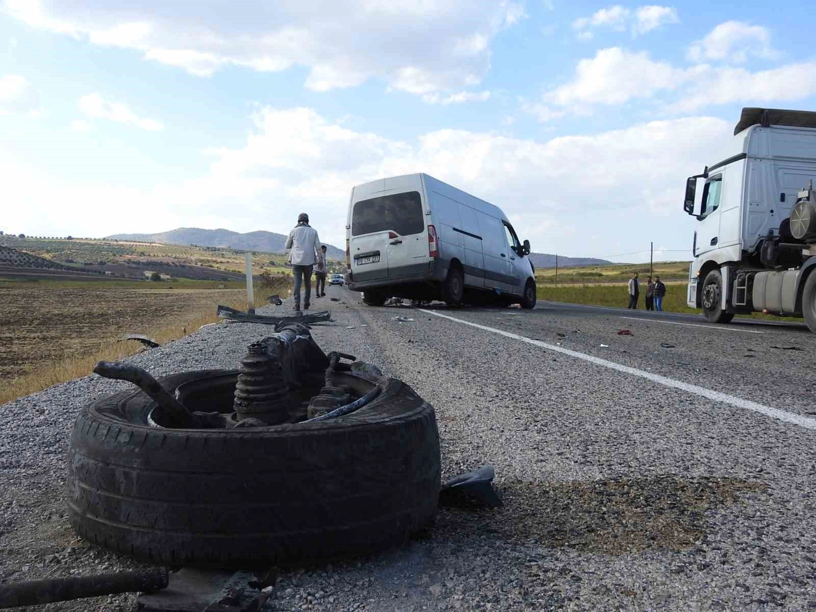Kilis-İslahiye karayolunun 35'inci kilometresinde hafif ticari araç ile tırın kafa kafaya çarpışması sonucu meydana gelen kazada 1'i ağır 2 kişi yaralandı.