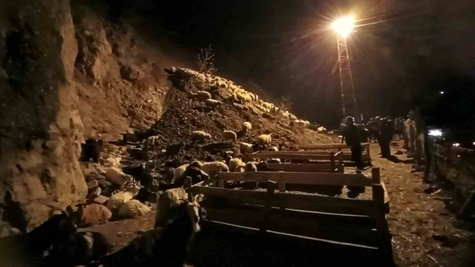 Hakkari'nin Kırıkdağ köyü Kırbaş mezrası yolunda meydana gelen toprak kaymasında yüzlerce küçükbaş hayvan sürüsü son anda kurtuldu.