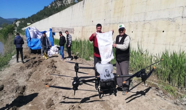 Kastamonu'nun Hanönü ilçesinde dron ile çeltik ekimi yapıldı.